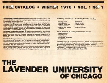 In addition to activities with the GAU, Sprague also taught gay and lesbian history courses at Gay Horizons and Chicago's Lavender University ( based on a model on the West Coast ) . Lavender University was operated by a coordinating committee and assisted by an advisory committee that provided opportunities for lesbians and gay men to share their skills, interests and knowledge in supportive settings. Enrollment was open to everyone regardless of educational background and was co-educational unless same-sex-designated.
