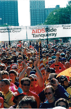 Besides Proud to Run, Chicago athletes have stepped up for other charitable events, especially those focused on AIDS in the 1980s and 1990s. These include the Strike Against AIDS annual bowling benefits at Marigold Bowl, aerobathons, AIDS Walks, AIDS Rides, roller-skating parties at Rainbo Roller Rink, golf benefits and more. CMSA established Athletes Against AIDS in 1987, helping to pay the dues for members with AIDS.